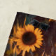 Deux chiens dans un champ de tournesol regardant un coucher de soleil.