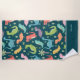 Ajoutez une touche Jurassique personnalisée au voyage océanique de votre petit enfant avec cette serviette de plage de dinosaure monogrammée. Serviette a un motif de dinosaures colorés sur un arrière - plan bleu foncé et votre petit nom et monogramme dans le coin inférieur droit. On y trouve aussi des palmiers et des cactus. La serviette de plage fait un joli cadeau d'anniversaire, de Noël ou autre, spécialement pour un jeune garçon !