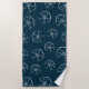 Dessin de sable. Art de ligne. Serviettes de plage bleu marine personnalisées. Idée cadeau pour les personnes qui aiment la mer et la vie marine.