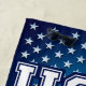 Cette serviette de plage patriotique inspirée par le drapeau américain, caractéristiques alternant les rayures rouges et blanches, 50 étoiles argentées a placé sur un arrière - plan bleu, et les lettres Etats-Unis au milieu.