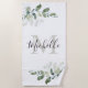 Serviette De Plage Elégant Eucalyptus Monogramme Nom du script