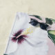 Illustration délicate avec des fleurs d'hibiscus blancs et des feuilles verts vibrants contre un arrière - plan rose doux. Les fleurs sont méticuleusement détaillées, avec de subtiles ombres et des pops de jaune dans les étamines, ajoutant à la beauté naturelle. Les teintes douces et l'élégance de la composition évoquent un sentiment de calme et de grâce, parfait pour des motifs naturels ou des collections d'art floral.