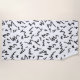 Élégante serviette de plage moderne en noir et blanc avec rayures abstraites et éparpillées sur l'arrière - plan blanc.