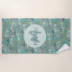Ce joli modèle personnalisé de serviettes de plage pour enfants dispose d'un motif fossile de dinosaure bleu et vert, avec des plantes jurassiques, des os de squelette Dino, et d'autres illustrations archéologiques. Il y a aussi de l'espace pour ajouter votre nom de garçon et monogramme, dans la typographie lunatique. Le cadeau idéal pour les amateurs d'histoire ou de dinosaures, à la fois pour les tout-petits et les enfants plus âgés.