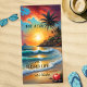 Serviette de plage ornée d'un tableau représentant un coucher de soleil sur une plage tropicale avec une pomme (en option). Idéal pour un enseignant et facilement personnalisable pour n'importe qui d'autre!
