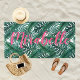 Serviette De Plage Feuilles de palmier à aquarelle tropicale Nom rose
