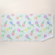 Cette serviette de plage a un design moderne du milieu du siècle des cercles et des parties de cercle faites pour ressembler à des fleurs avec des tiges faites par des lignes continues, répétant à travers le design.