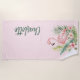 Arrière - plan rose vif et féminin décoré d'un flamant rose, de fleurs tropicales et de feuillage. Personnaliser et ajouter un nom