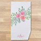 Cette jolie serviette de plage fleurie est décorée de roses d'aquarelle et de feuillage dans les tons rose, corail et vert. Facilement personnalisable avec votre nom et monogramme. Aquarelle originale © Michele Davies.