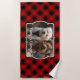 Serviette De Plage Fun Custom Christmas Red & Black Plaid Photo Cadre