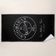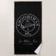 Serviette de plage élégante, moderne et tendance, cadeau de mariage noir pour garçon d'honneur avec monogramme - initiales, nom, lieu, date, couple amoureux romantique unique dessin d'oiseaux et calligraphie manuscrite tendance.