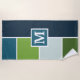 Grandes bandes en bleu et vert avec votre Monogramme. Apportez un peu de bonheur dans votre vie avec ces couleurs éclatantes. Profitez de votre temps de plage avec cette serviette personnalisée.
