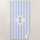 Serviette De Plage Initiales monogrammes bleu clair pâle rayures blan