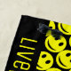Joli Amusant Joyeux Faces Jaunes Souriant Motif Unique Serviette de plage Jaune et Noir avec texte personnalisé, Live, Rire, Soyez heureux, pour les Joyeux Temps d'été : -)