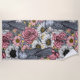 Motif vectoriel dessiné à la main avec diverses fleurs, feuilles et oiseaux de jay gris