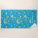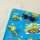 Jolie serviette de plage pour un garçon avec un motif de camion de construction sur un arrière - plan bleu. Facile à personnaliser avec votre nom !