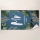 Serviette De Plage M. feuille tropicale & typographie bleu moderne