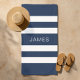 Moderne Elegant Marine Blue Stripes Nom Motif Beach Towel.