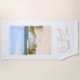 Serviette de plage avec photo du bord de mer avec dunes de sable et herbes de plage, y compris une citation humoristique de On Beach Towel Time.