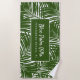Une serviette de plage très chic en feuille de palmier motif avec espace pour ajouter votre nom de maison de plage ou une citation de vacances préférée plage. Diverses couleurs disponibles, et les couleurs sont également modifiables dans l'éditeur avancé, vous pouvez donc créer une serviette amusante avec des vibes d'île en couleurs pour correspondre à votre salle de bain!