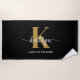 Cette serviette de plage noire simple et élégante avec votre prénom dans une police de script tendance en blanc, votre première initiale dans une police casquette moderne en or, et votre nom complet en CASQUETTE en blanc est parfait pour vous. C'est design, tendance et pourtant très classique. Prenez un bouquet pour la plage ou pour votre piscine et l'espace terrasse. Ils seront si utiles.