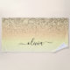 Gold Faux Foil Parties scintillant à étincelles métalliques brossé Monogramme Nom Plage Serviette. Cela rend le cadeau parfait pour 16 ans, mariage, douche nuptiale, anniversaire, baby shower ou bachelorette pour quelqu'un qui aime le luxe glam et les styles chic.