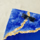 Serviette de plage personnalisée en bleu royal et or avec un design nébuleux en marbre. Le nom et la lettre initiale sont des modèles pour les customiser facilement. La serviette de plage se vend à elle seule (sans accessoires présentés sur les images in situ).