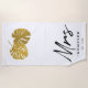 Un beau design de feuille de Monstera en or moderne avec le texte "Mme" serviette de plage qui peut être customisé à votre nom de famille et date établie. Un cadeau idéal pour les jeunes mariés, douches nuptiales, cadeaux de mariage. Customisez le texte et faites-le vous-même.