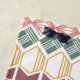 Cette serviette de plage a un design Boho de différentes formes avec des lignes en elles dans des couleurs variées.