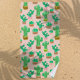 Un motif de différents types de cactus plantés dans différentes couleurs de pots. Ils sont placés sur un arrière - plan rose clair et sont entourés de formes aiguilles de cactus. Chaque cactus est coloré d'aquarelles dans des tons vert vif !