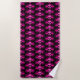Une serviette de plage super mignonne pour les Goths colorés là-bas. Ceci montre un motif de crânes ailés romantiques en rose vif sur un arrière - plan noir.
