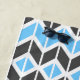 Cette serviette de plage est ornée d'un motif en os de hareng géométrique coloré en bleu, gris foncé et blanc.