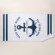 El diseño de Toalla de playa náutica con un diseño sencillo y elegante de estilo costero blanco y azul marino con Logotipo de ancla. Personalice el texto del personalizado con el nombre de su barco junto con su ubicación, ciudad y estado. Regalo Ideal para propietarios de botes con temática náutica. No lo piense y Adquiera este Lindo diseño de Toalla Nautica para bote.