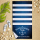 Motif rayé nautique amusant et tendance avec une étoile et une ancre comme le centre du modèle personnalisé pour cette serviette souvenir amusante pour vos vacances en famille, ou événement de réunion de famille.