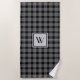 Serviette de plage de Motif en noir et gris monogramme. Touchez la plage avec ce monogrammed classique noir et gris à damiers plaid motif de serviette de plage avec votre monogramme au centre.