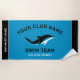La conception personnalisée des serviettes de bain de l'équipe de natation pour les nageurs comprend du texte personnalisé pour le prénom et le nom du nageur, le nom du club de natation, la mascotte ou autre texte. Ajoutez le logo de votre équipe à l'image de l'espace réservé aux dauphins. Le jeu de couleurs bleu océan, noir et blanc peut être modifié pour être coordonné avec les couleurs de votre équipe. Veuillez nous contacter à kathleen@plushpaper.com pour toute question de conception.