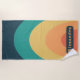La typographie vintage des années 1970 est funky et porte-serviettes de plage personnalisées avec arche cool en bleu vert jaune et orange. Une superbe les années 70 hippie vibe serviette de plage personnalisée pour l'été. OEuvre originale de l'artiste Catherine Sweetman