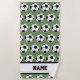 Serviette de plage nommée faite sur commande avec la copie de ballon de football. L'idée fraîche de cadeau d'anniversaire pour le footballeur, les enfants, la maman, le papa, l'ami, l'équipe, la ligue etc. folâtre des présents pour des garçons et des filles. Ajoutez votre propre nom, monogramme ou citation personnalisé.