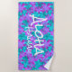 Turquoise et Violet Colorway. Ces hibiscus graphiques se jouent les uns les autres pour créer un camouflage moderne avec la saveur d'une vintage empreinte de chemise d'aloha. Customisez cette serviette de plage avec votre nom, un endroit (comme Hawaï) ou dire. Ces dessins sont présentés de plusieurs couleurs.
