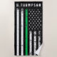 Un nom sur mesure style en effervescence fine ligne de drapeau de plage drapeaux de la ligne verte. La fine ligne verte qui traverse le centre est représentative de la patrouille frontalière, des Rangers de parc et des gardes de jeu. Suivez les indications dans la barre latérale pour ajouter un nom et le faire paraître parfait au-dessus du drapeau.
