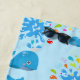 Jolie baleines bleues motif avec l'eau colorée splash oh garçon avec des gouttes dans différentes couleurs et un badge bleu clair transparent ronde avec un nom monogramme. Personnalisez en changeant le nom et l'initiale ou la personnaliser pour ajouter votre touche personnelle.
