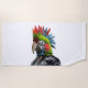 Funny Punk Rocker Parrot avec coiffure mohican portant une veste en cuir.