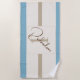 Make a sophisticated coastal statement at the beach or pool with this customizable blue and brown striped beach towel featuring your personalized name and initial monogram. The elegant pattern showcases soft sky blue, rich mocha brown, warm tan/taupe, and clean cream horizontal stripes creating a relaxed beachy, coastal look that stands out with style. Your personalized name appears in flowing brown script with a large decorative tan initial, elegantly framed. Customize with any name for a unique beach essential. Large, generous size (approximately 30x60") provides ample coverage for sunbathing, drying off, or using as a beach blanket. Super-soft, highly absorbent terry cloth fabric dries quickly and feels luxurious. Fade-resistant printing maintains soft blue, brown, and tan colors even after multiple washes and sun exposure. The coastal color palette looks sophisticated at any beach, pool, lake, or resort. Perfect for beach vacations, pool parties, lake trips, boat days, or coastal living. Lightweight yet durable. Machine washable. Makes a thoughtful personalized summer gift, beach house essential, or vacation must-have.