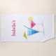 Cette serviette de plage tropicale est accentuée avec des cocktails d'amusement et votre nom ou dire, écrit dans une police d'amusement, le rendant parfait pour une réception au bord de la piscine ou un jour à la plage !