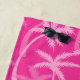 Cette serviette de plage moderne présente un design de palmiers tropicaux dans des tons rose chaud, magenta et fuchsia. Personnalisez la typographie de script avec votre nom ou monogramme.