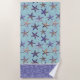 Starfish dans la piscine de sable et le serviette de plage. Estarfish tropicale colorée en rose, bleu, violet, gris, taupe, turquoise et marron. L'accent de la pièce est Coralize en violet. Océan, bord de mer, nautique, décoration de salle de bain d'inspiration maison de plage.