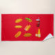Serviette de plage avec hot dogs.