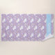 Serviette de plage avec un motif d'une petite licorne blanche mignonne et de divers éléments décoratifs comme les étoiles, la sucrerie de coton, les fleurs, la sucrerie, la lucette, le feuille floral, les coeurs, la crème glacée de popsicle, le petit gâteau et l'arc-en-ciel ! Palette de couleur en pastel de rouge, de jaune, de bleu, pourpre et blanc. Personnalisez avec le nom dans l'espace bleu de bannière fourni.