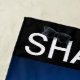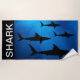 Les requins sous-marins frais regardent des serviettes de plage de silhouette avec l'image de quatre requins de mako dans la natation d'océan et du requin de mot hardiment imprimé dans le grand style de typographie. Conçu comme une serviette de serviette de piscine ou de plage d'été pour le voyage ou les loisirs.