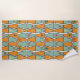 This beach towel has a mid-century modern design of rhombuses repeating across the design, with some having starbursts. If you like different colors, message me.